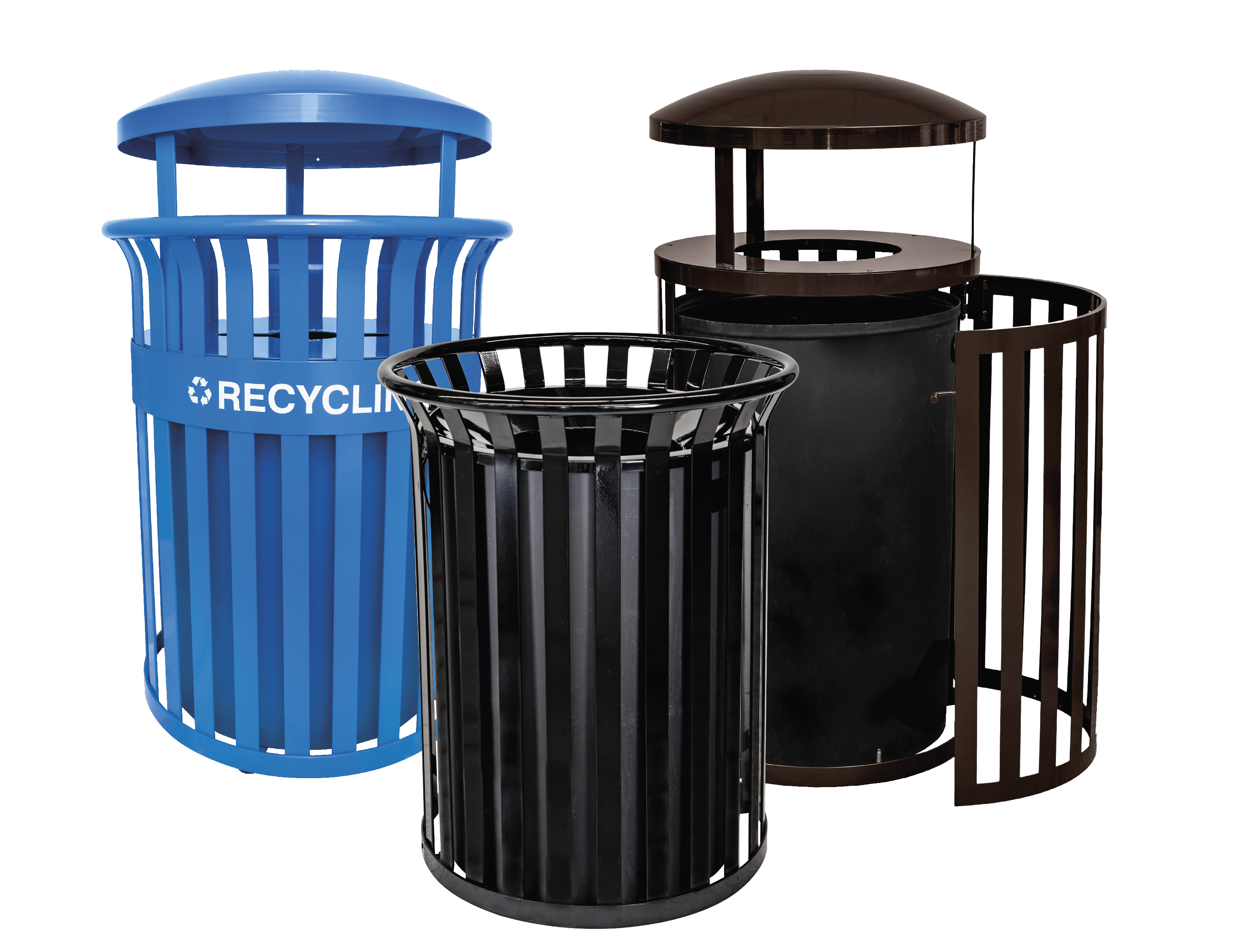 Streetscape CollectionAll-steel receptacles that ares manufactured to withstand the elements.