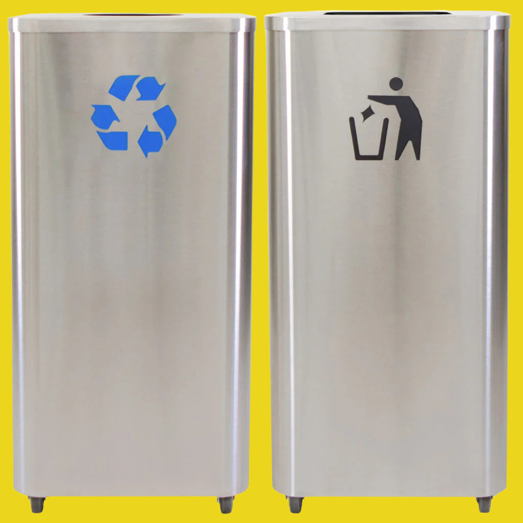 Indoor Waste SeparationFor The Indoor Waste-Stream Separators. A 33-gallon capacity, which denotes waste stream using laser cut graphics and colored lids and liners.