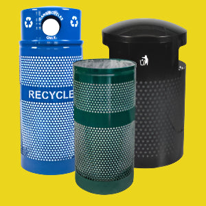 Landscape SeriesOutdoor Perforated Recycling Receptacle With Dome Top. Available in 34 & 40 Gallon Capacities