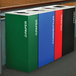 Get OrganizedThe Kaleidoscope Collection offers customers the ability to create a custom waste collection station.
