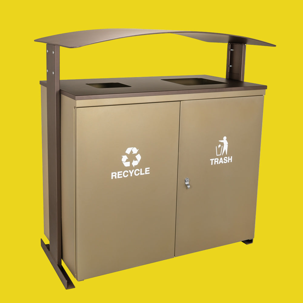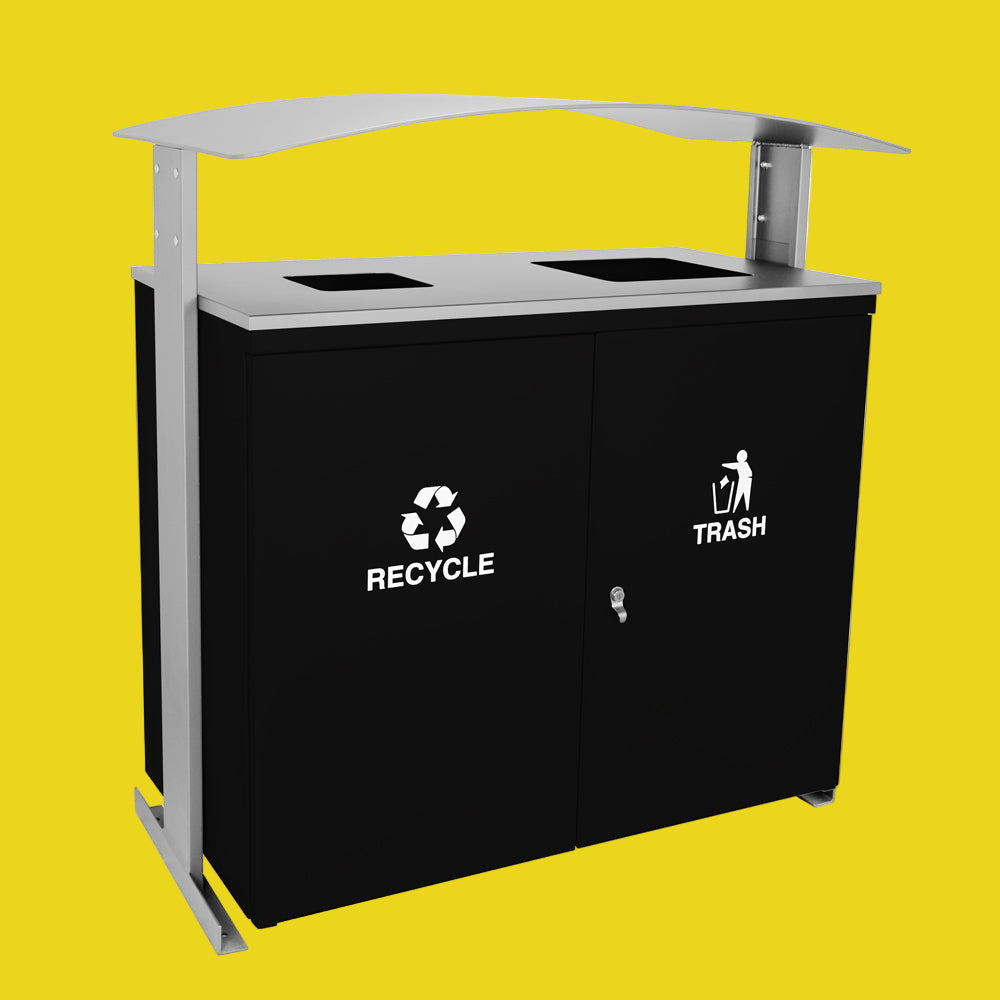 Outdoor Public PlacesThe Two-Stream Outdoor Receptacle features a durable aluminum canopy that prevents rain and elements from entering the unit.