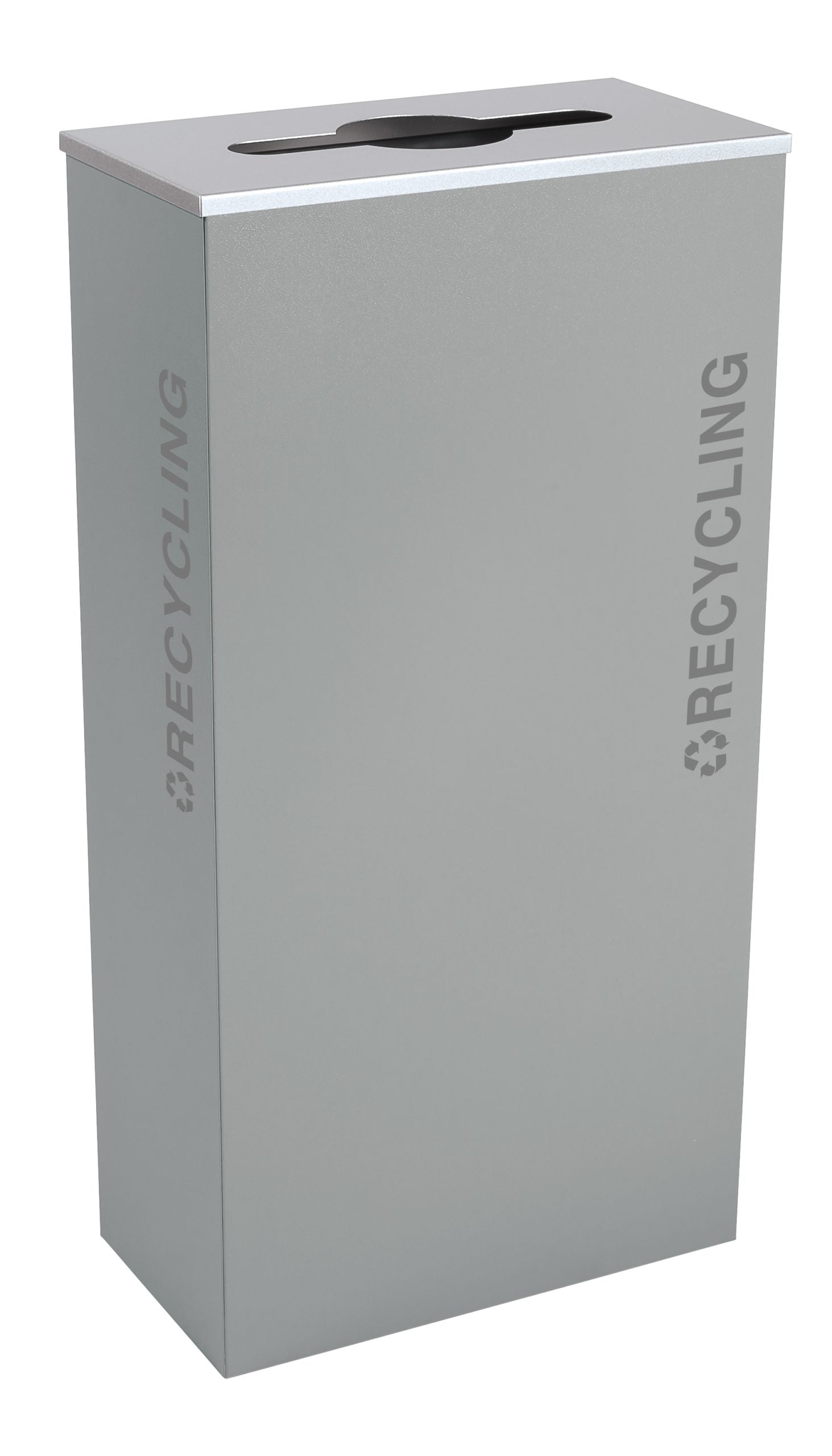- Ultra-modern, silver, easy-to-read graphics pre-applied vertically on two sides to designate waste streams (selected from drop down above)