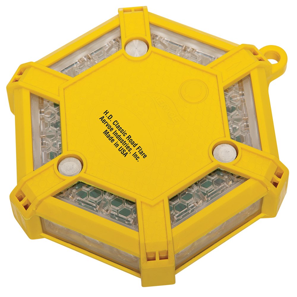 The H.D. Classic Road Flare with Amber or Red LEDs is an extremely durable, 18-LED flare that is a safe alternative to incendiary flares. The flare is made of crushproof polycarbonate plastic with an impact-resistant rubber housing, featuring focused lenses to increase brightness. Visible light range up to 2 miles.