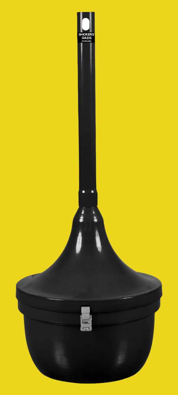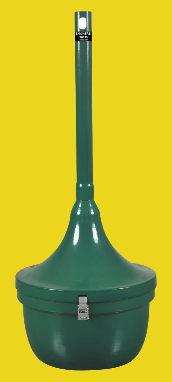 The Smokers’ Oasis Cigarette Receptacle is an all-steel, fire-safe cigarette receptacle that will not melt or burn! Additionally, it features a 4.5-gallon, removable galvanized steel container and requires no sand or water for use.