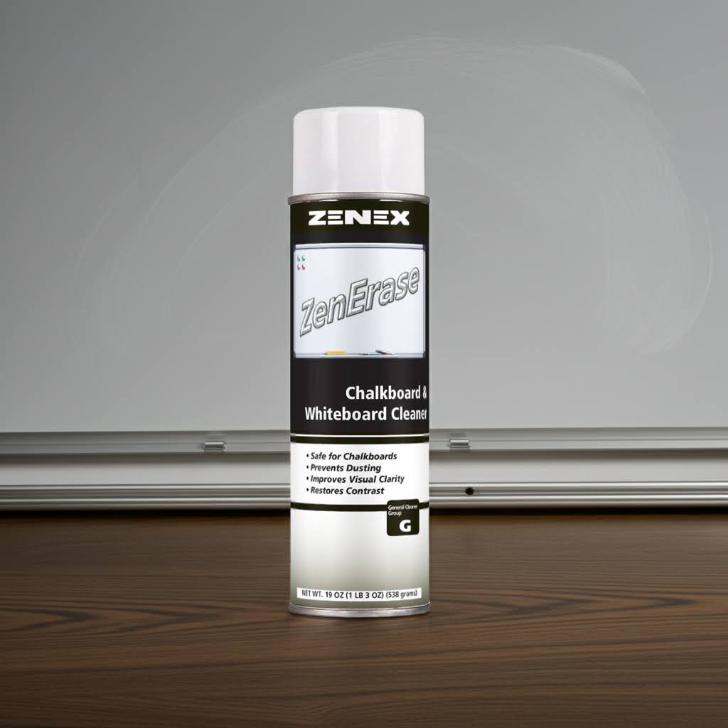 ZenErase Chalkboard and Whiteboard Cleaner - This special formula thoroughly removes all chalk residue, smudges and fingerprints from chalkboard surfaces. Improves readability and visual clarity. ZenErase is designed for fast cleaning and dust prevention.