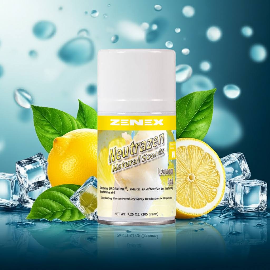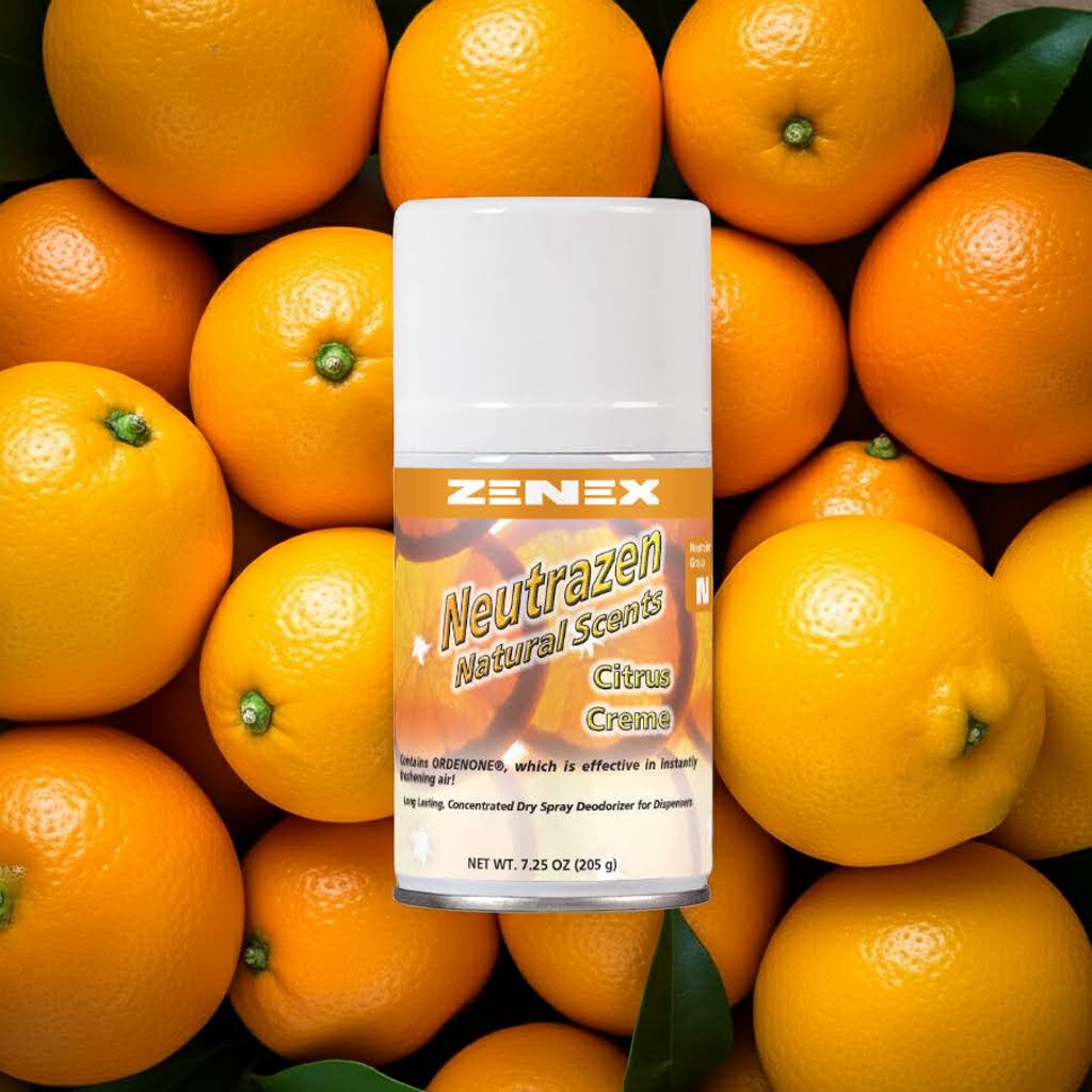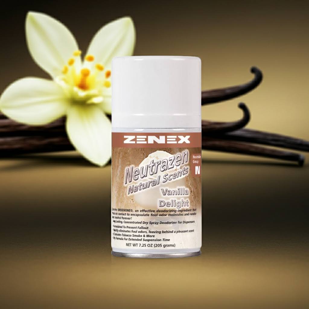 Zenez Neutrazen Metered Aerosol- Deliciously scented, finely atomized, micro-mist air freshener provides complete deodorization of malodors in the air. Does not allow wetting, staining or messy fall-out.